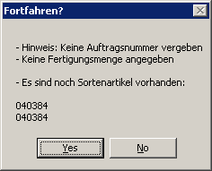 Mit Ja wird die Kalkulation dennoch durchgeführt, mit Nein wird die Berechnung abgebrochen.