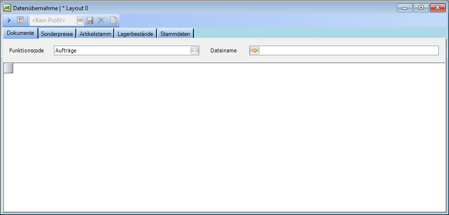 Auf dem Reiter Dokumente können Aufträge, Bestellungen und Eingangsrechnungen importiert werden. Musterdateien im jeweiligen Bereich angehängt.