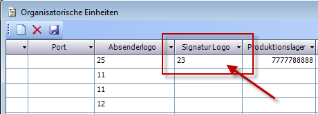 3. Ihre Grafik hat nun eine Nummer erhalten. Diese Nummer muss nun im Fenster „Organisatorische Einheiten" in der Spalte „Signatur Logo" ausgewählt werden.