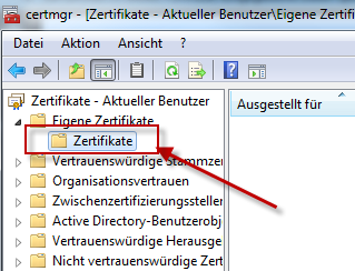 2. Wählen Sie den Punkt „Eigene Zertifikate" – „Zertifikate"