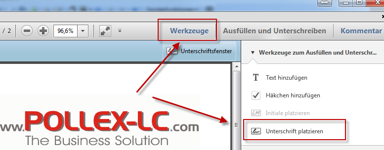 2. Wählen Sie den Punkt „Werkzeuge" und dann „Unterschrift platzieren"