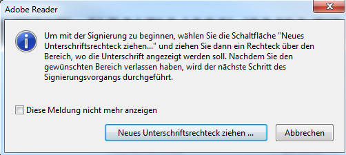 3. Wählen Sie „Neues Unterschriftsrechteck ziehen …"