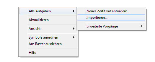 3. Klicken Sie mit der rechten Maustaste in den rechten Fensterbereich und wählen Sie „Alle Aufgaben" – „Importieren…"
