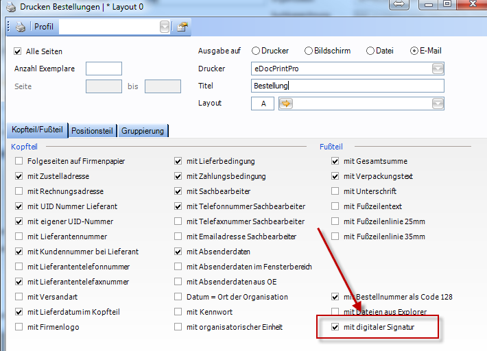Die digitale Signatur wird nur beim Versand per E-Mail eingefügt: