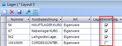 Es werden alle Lager in die Bewertung aufgenommen. Ausgenommen sind Kundeneigentumslager und optional das Reparaturlager und das Streckengeschäftslager | Es werden nur Lager behandelt bei denen die Option Lagerbewertung aktiviert ist.
