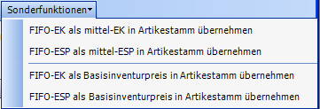 Beispiel: Wenn der mittlere Einkaufspreis (FIFO-EK) UND der mittlere Einstandspreis (FIFO-ESP) übertragen werden sollen, müssen BEIDE Befehle ausgeführt werden.