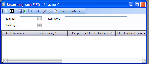 In der Symbolleiste wird für besondere Funktionen, die im Fenster Bewertung nach FIFO möglich sind, die Schaltfläche
