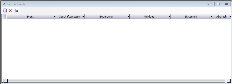 | Abbruch | In manchen Events kann die Spalte "Abbruch" aktiviert werden. Die Programmausführung wird dann abgebrochen, sobald das Event feuert |