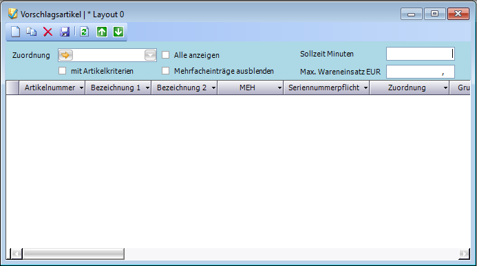 Mit dem Haken mit Artikelkriterien werden die Vorschlagsartikel auch über die Artikelkriterien (Hauptgruppe, Sortiment, Gruppe, Reihe und Statistik 1-10) selektiert.