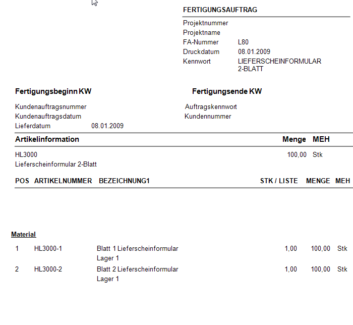 Die Fertigungsauftragsnummer wird durch das System als fortlaufende, eindeutige Nummer vergeben.