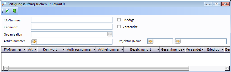 Siehe: Fenster Fertigungsauftrag suchen