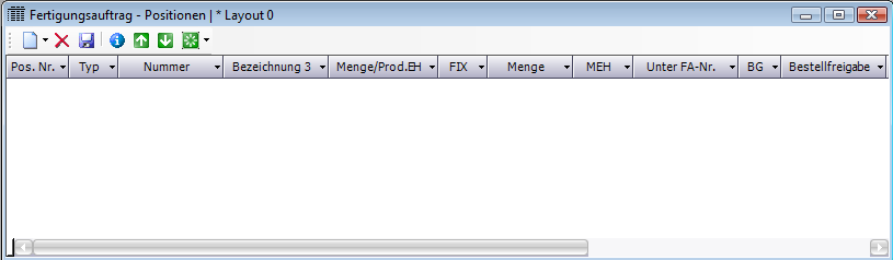 Öffnet das Positionsfenster Fertigungsauftrag Positionen wenn es noch nicht geöffnet ist, und befüllt es mit den Positionen des ausgewählten Fertigungsauftrags bzw. wechselt auf Fertigungsauftrag Positionen, wenn es bereits geöffnet ist.