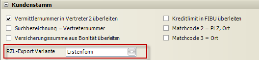 Erwähnenswert ist nur der Export der Stammdaten. Hier gibt es eine Einstellung RZL-Export Variante im Kundenstamm