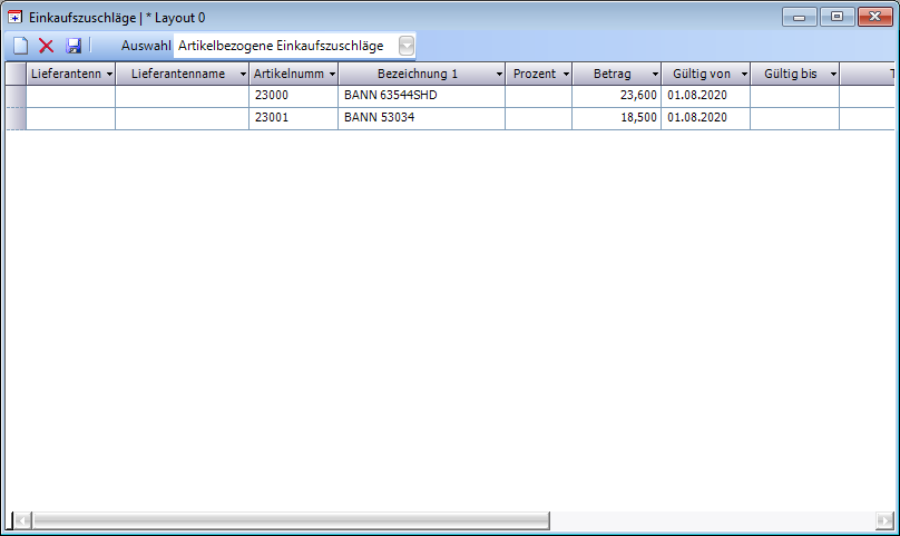 Mit der Funktion Einkaufszuschläge können artikelbezogene oder reihenbezogene Einkaufszuschläge in Betrag oder Prozent eingetragen werden. Die Einkaufszuschläge sind Teil der mehrstufigen Einkaufskonditionen. D.h., nur wenn mehrstufige Einkaufskonditionen verwenden aktiviert ist, finden die Einkaufszuschläge auch ihre Anwendung.