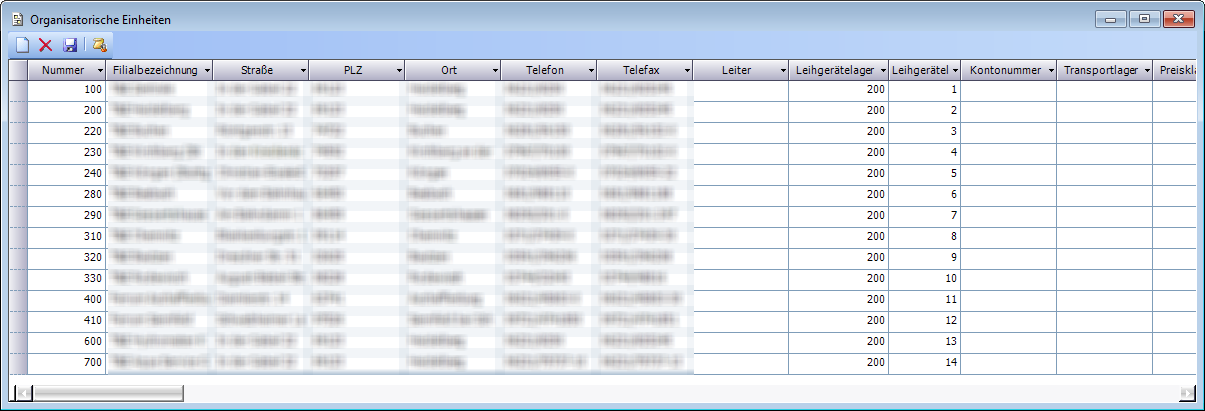 In den Eigenschaften der organisatorischen Einheiten müssen zusätzlich ein „Leihgerätelager" und ein „Leihgerätelagerort" hinterlegt werden. Alle Abbuchungen und Zubuchungen von Leihgeräten laufen über das dort eingetragene Lager.