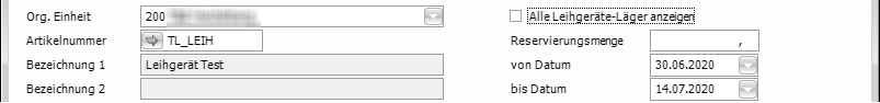 Die Artikelnummer wird aus anderen Fenster automatisch an das Fenster Leihgeräteverwaltung übergeben.