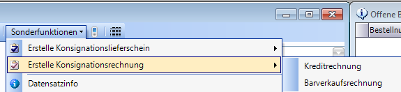 Nach Rücknahme der Leihgeräte kann nun die Verrechnung der Leihgebühr erfolgen. Dazu wird der ursprüngliche Leihgeräteauftrag geöffnet und mit der Funktion „Erstelle Konsignationsrechnung" die Rechnung für die Leihgebühr erstellt: