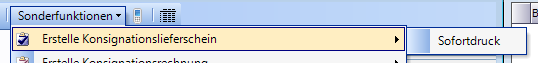 Holt der Kunde das Leihgerät ab, so wird in den entsprechenden Leihgeräteauftrag gewechselt und dort die Funktion „Erstelle Konsignationslieferschein" gewählt. Bei serien- oder chargennummernpflichtigen Artikeln muss zuerst noch die Zuordnung der Serien-/Chargennummer in den Positionen erfolgen.