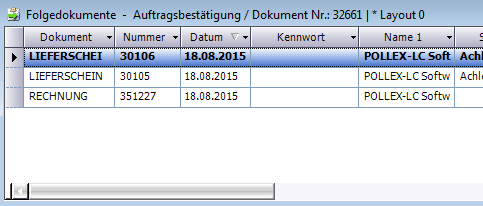 In den Folgedokumenten des Leihgeräteauftrags sind somit im Normalfall 3 Einträge vorhanden: