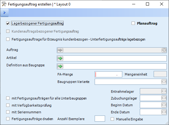 Im Artikelstamm stehen im Layout 0 auf der Registerkarte Eigenschaften folgende Controls zur Verfügung, die im Modul Produktion verwendet werden: