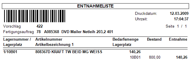 - Druck von Fertigungsaufträgen