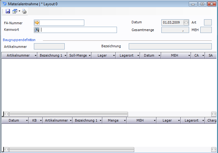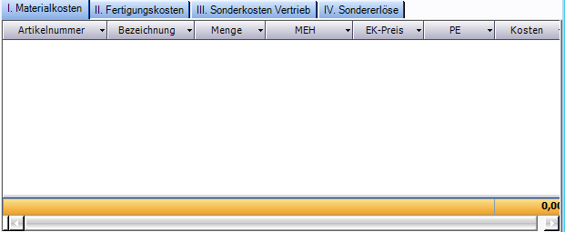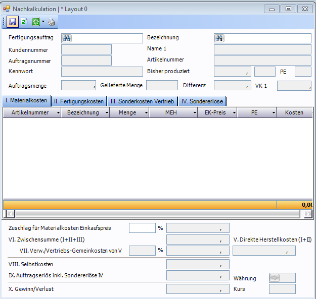 Die Felder zur Verwaltung der Herstellkosten werden im Layout 0 standardmäßig nicht angezeigt.