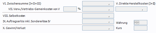 Die Sondererlöse (Sondererlöse 1 bis 4) aus der manuellen Erfassung in der Nachkalkulation (Tabelle: NK) werden von den Herstellkosten in Abzug gebracht.