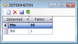Faktor | In Faktor muss der Faktor der Zeiteinheit im Verhältnis zu einer Stunde gespeichert werden. Min = 60 Std = 1 |