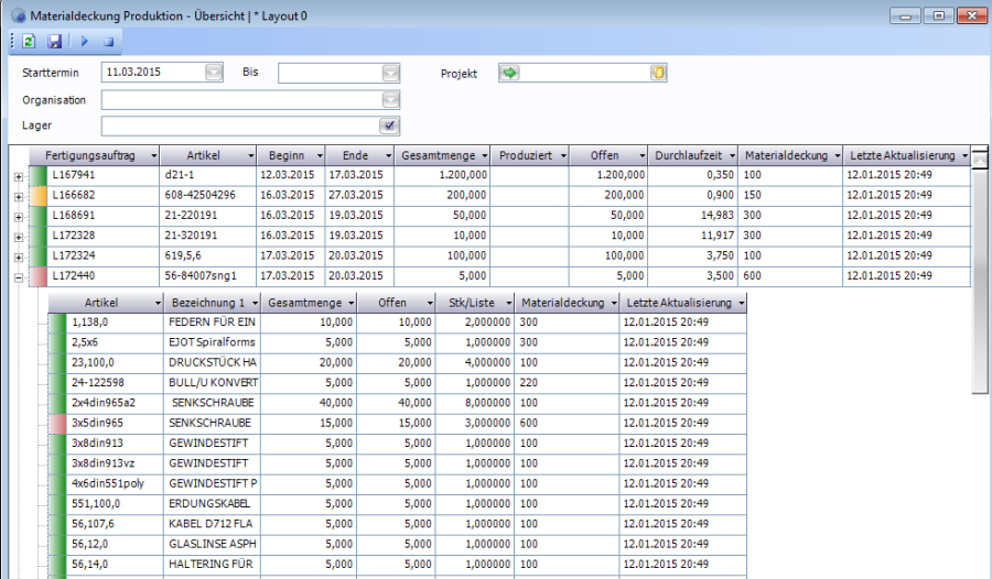 - Prüfung der Materialdeckung (Prüfung der terminrichtigen Verfügbarkeit des Materials entsprechend der Rangfolgeplanung)