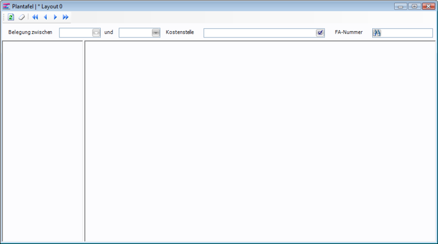 | [ Strg ] [ F ] | Eine Abfrage periode zurück | Die Funktion des Symbols ist abhängig davon, welcher Zeitraster in der Plantafel angezeigt wird.