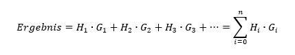 Betrachtet man Hx als die Häufigkeit des Vorkommens eines Suchfelds x und Gx die dazugehörige Gewichtung, so ergibt sich folgende vereinfachte Formel: