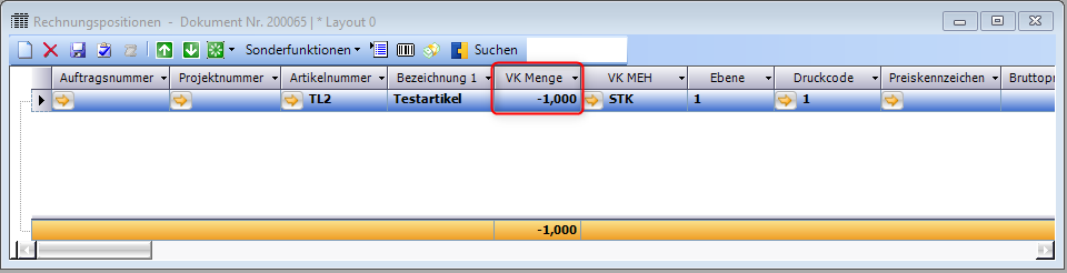 Dabei muss ebenfalls ein Artikel mit einer negativen Menge in den Positionen erfasst werden.