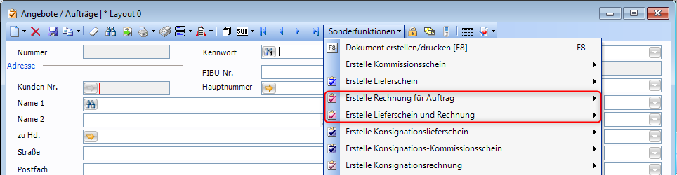 Gutschriften können auch aus den Fenstern "Angebote/Aufträge" und "Lieferscheine" heraus erstellt werden.