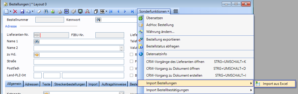Import Bestellungen aus Excel