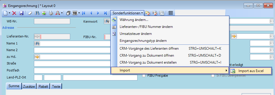 Import Eingangsrechnungen aus Excel