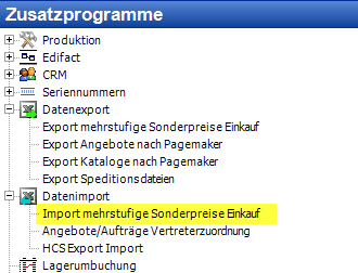 Eine komfortable Wartung dieser Preise kann über die "Import mehrstufige Sonderpreise" Funktionalität erfolgen.