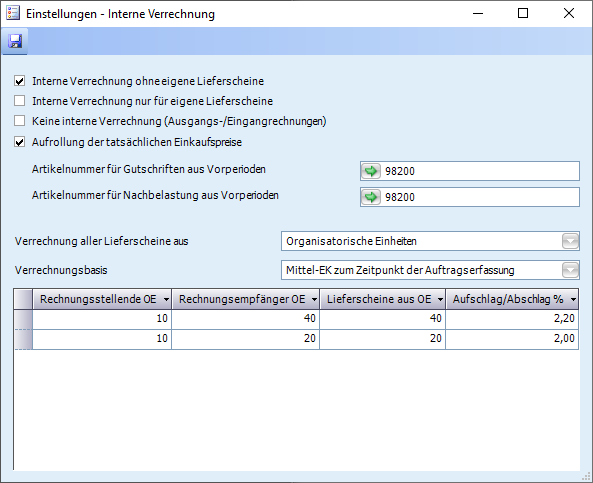 Bei der internen Verrechnung werden Rechnungen aus Lieferscheinen an Kunden aus den organisatorischen Einheiten verrechnet.