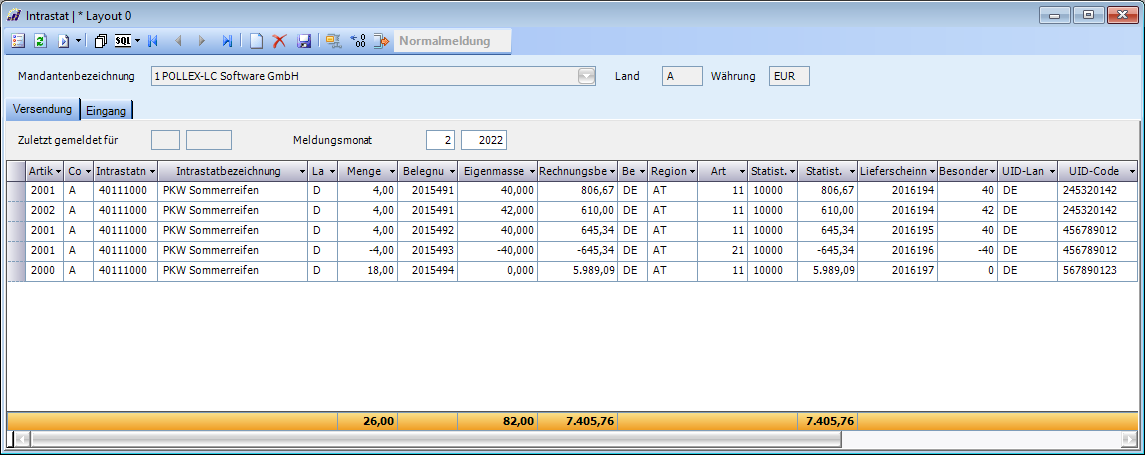 Beim Verdichten wird nun auch die UID-Nummer berücksichtigt, sodass dann je Intrastatnummer und UID-Nummer eine Zeile vorhanden ist.