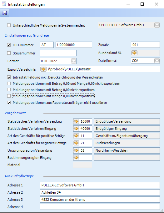 Erweiterte Einstellungen für Intrastatmeldungen je Systemmandant