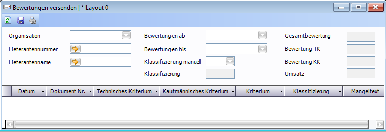 Das Fenster befindet sich unter "Grundlagen" → "Lieferantenbewertung ISO 9000" → "Bewertungen versenden".