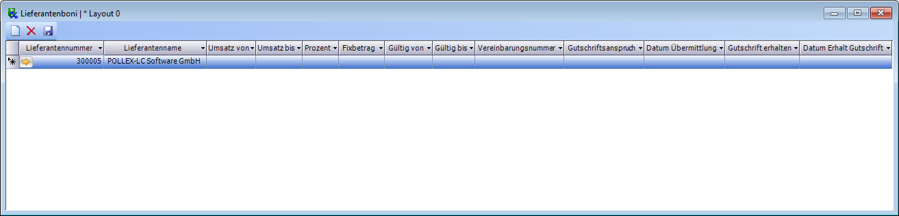 | Vereinbarungsnummer | Hier kann die Nummer der Bonusvereinbarung bei diesem Lieferanten eingetragen werden. |