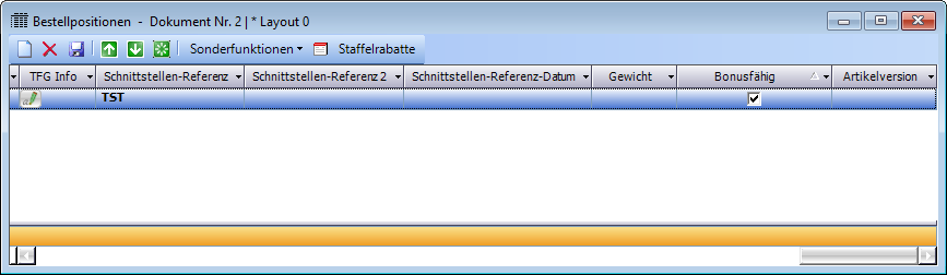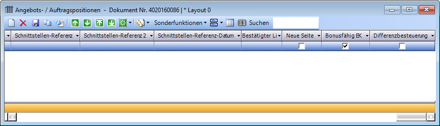 Folgende neuen Spalten wurden in das Fenster Bestellpositionen eingefügt: