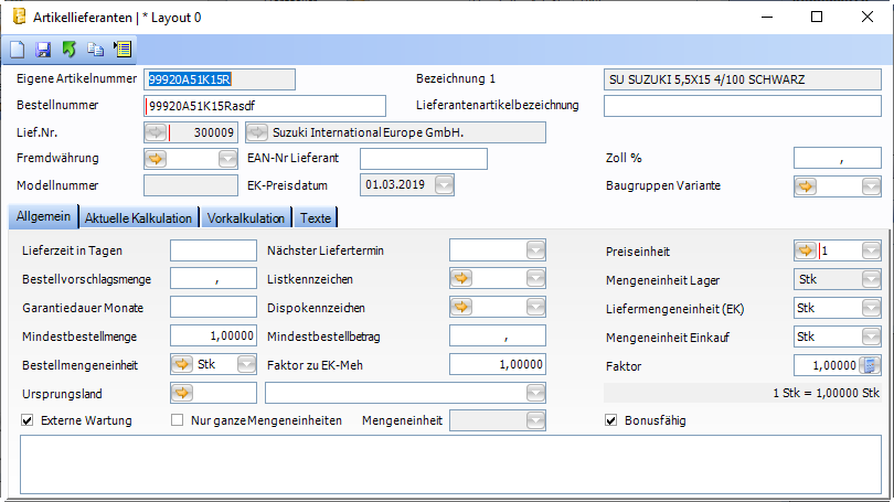 Folgende Felder wurden in das Fenster Artikelleiferanten eingefügt: