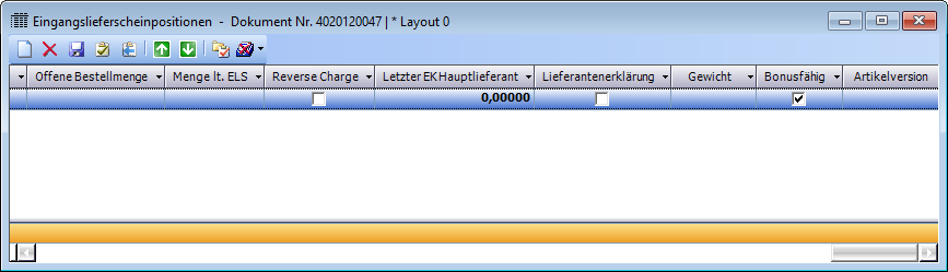 Folgende neuen Spalten wurden in das Fenster Eingangslieferscheinpositionen eingefügt: