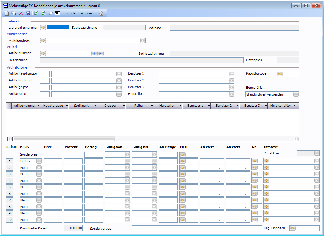 Folgende neuen Spalten wurden in das Fenster Mehrstufige EK-Konditionen eingefügt: