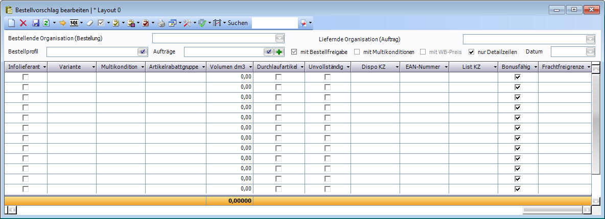 Fenster Bestellvorschlag bearbeiten