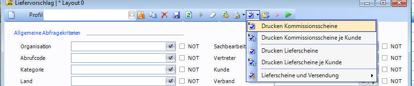 Erstellung und Druck aller Kommissionsscheine für den Liefervorschlag.