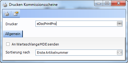 Als Drucker für den automatischen Druck der erstellten Kommissionsscheine wird der Drucker aus der Druckerzuordnung des Benutzers mit Typ=6 (Kommissionsschein) vorgeschlagen.