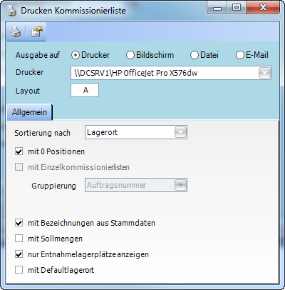 Die Ermittlung der Entnahmelagerorte und Mengen erfolgt beim Druck der Kommissionierliste