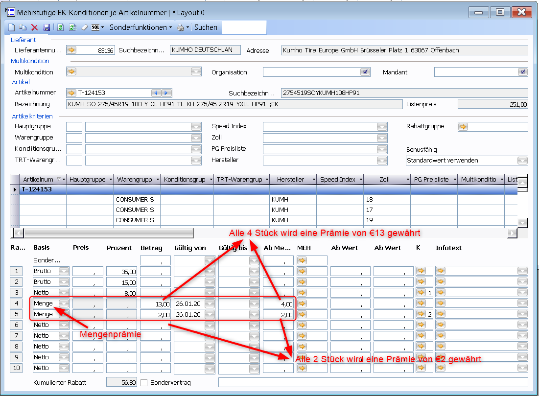 Beschreibung des Konfigurationsfensters für mehrstufige Einkaufskonditionen und wie diese berechnet werden.